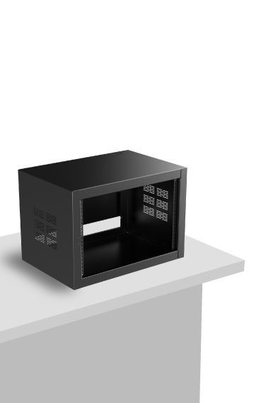 This model is 16-gauge CRS and include one pair of mounting rails, tapped 10-32, hardware and wiring access below rear door or panel.