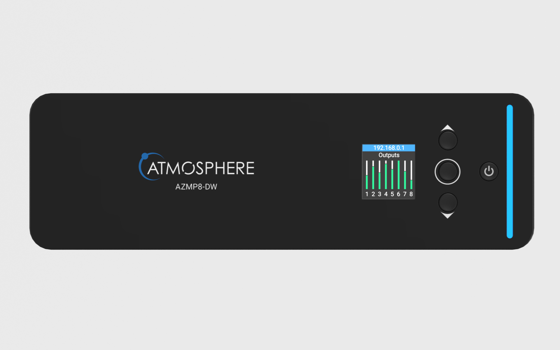 The Atmosphere AZMP8-DW is a powered (1200 Watt) 8-zone audio processor and the heart of an Atmosphere audio control system. Powerful DSP combined with innovative algorithms offer custom solutions for a wide variety of spaces. Dante networked audio provides convenient audio distribution to other Dante-enabled devices. A built-in message player, virtual wall controllers, learning ambient noise sensing, Tilter Filter™, auto-gain, GPIO, bell scheduler, room combine, and many more features, make the AZMP a processing powerhouse.