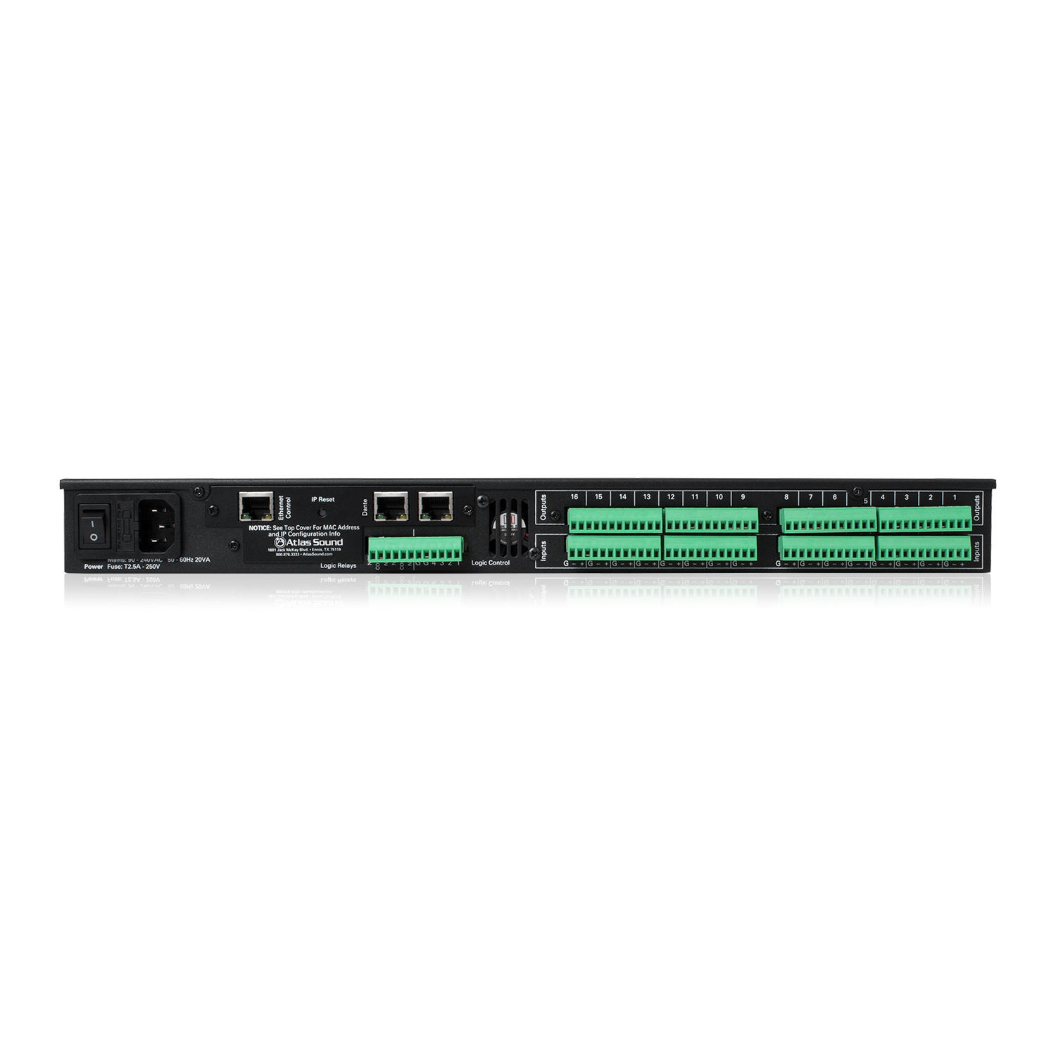 This model includes 16 inputs and 16 outputs using Phoenix style connectors. BlueBridge® additionally works with the Atlas BluePanel software which enables the designer to create custom interfaces that can be accessed via a computer connected to the network. BluePanel can also be used to program wall controllers including the BB-TOUCH7 touch panel giving the user access to the system's functionality for volume control, source selection, room combining, or any other function the designer programs. This enables the end user to have some control over the system without having to access the BlueBridge® device directly preventing any unauthorized changes from happening within the device.