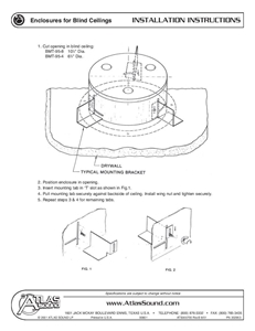 AtlasIED 4" Blind-Mount enclosure system ( U.S. Patent # 4,673,149 ) provides an easy and cost-effective alternative for secure speaker installation in retrofit ceiling applications. All necessary hardware is provided including a unique support system with mounting ears that telescope out from inside the enclosure and adjust vertically to accommodate ceilings with a thickness of 1/2" (13mm) to 1 3/8" (35mm).