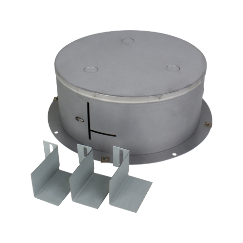 AtlasIED 8" Blind-Mount enclosure systems ( U.S. Patent # 4,673,149 ) provide an easy and cost-effective alternative for secure speaker installation in retrofit ceiling applications. All necessary hardware is provided including a unique support system with mounting ears that telescope out from inside the enclosure and adjust vertically to accommodate ceilings with a thickness of 1/2" (13mm) to 1 3/8" (35mm). Units feature CRS construction and include torsion-spring receptacles for quick mounting of torsion-spring grilles. (J-Nuts are included on the return of the enclosure to accommodate surface-mounting grilles.) To allow cable access, enclosure backplates are manufactured with three 1/2" (13mm) conduit knockouts. Enclosures are also equipped with sound damping material to minimize metallic resonance.