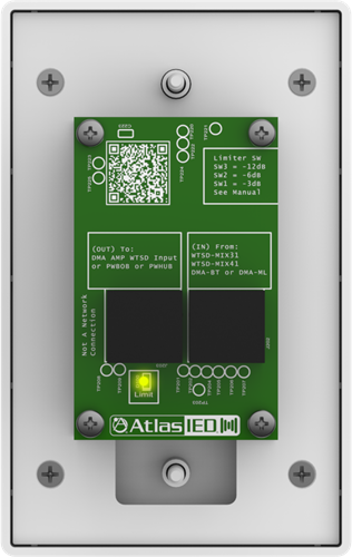 The DMA-BT includes an onboard signal limiter to manage the level placed on the summed bus, with adjustable settings from –3 dB to 21 dB. The DMA-BT faceplate provides signal and limiter status indicators.