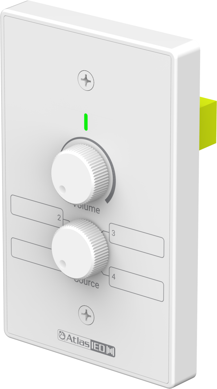 The AtlasIED DMA-VS combines remote volume control and source selection into a single, installer-friendly wall plate designed for use with the AtlasIED DMA and LMA amplifier series. By placing both level adjustment and source selection at the wall, the DMA-VS improves user accessibility while preserving centralized system control and configuration at the amplifier.
