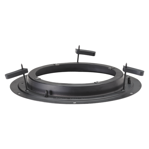 Model FAPR-6 plaster ring is used to mount Strategy Series™ 6" speakers into ceilings and walls for applications where an enclosure cannot be used, or where it is not desired. Unit is constructed with the same internal mounting flange as FA97-6 and FA95-6 enclosures. It may be used to mount non-transformer equipped speaker models into walls having a min. depth of 3 1/2"*. The FAPR-6 will facilitate installation of transformer-equipped speaker models into walls with a minimum depth of 5 1/2"*. Plaster ring is constructed of constructed of galvanized steel. It is equipped with four threaded inserts for speaker installation and three stud receptacles for mounting Strategy Series grilles. The mounting mechanism is comprised of three rotating clamps (included).