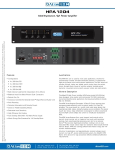 Whether the application is a large distributed constant voltage sound system or a high SPL sound reinforcement system, the AtlasIED HPA Series is the answer for high power/cost effective amplification needs.