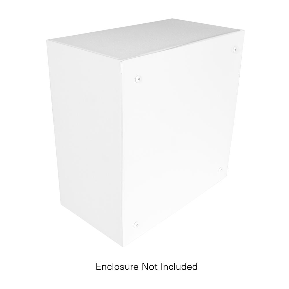 Enclosure cover plate designed for use with AtlasIED IP-HVP enclosures, models IP-SEST-HVP, IP-FEST-HVP. The cover plate provides protection of the enclosure and internal wiring. The cover plate is constructed of 22-gauge CRS and finished in a white powder coat. The units are packaged and sold in a quantity of 10.