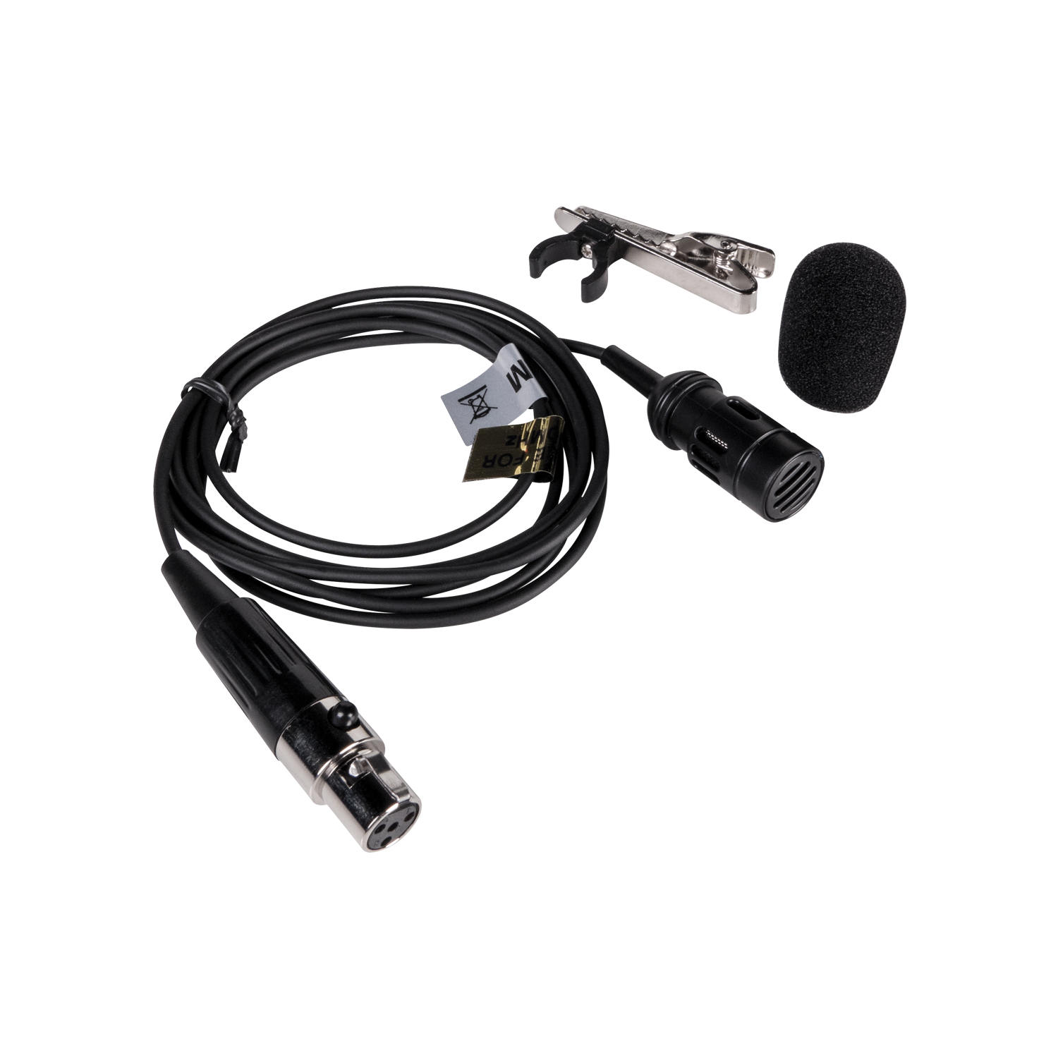 The MWLM is a lapel mic with mini XLR cable designe for use with the MWBPT belt pack transmitter and MWRCVR wireless receiver as part of a wireless microphone system. The MWLM includes a clip and windscreen.