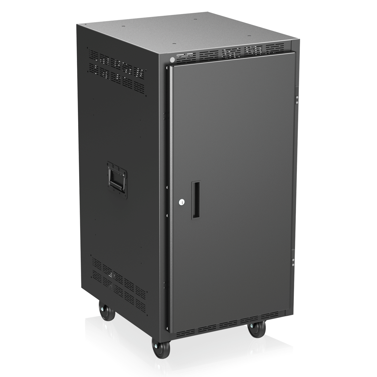 mobile cabinet is ruggedly constructed of 16-gauge CRS and include heavy-duty casters. Equipped with a front pair of 11-gauge CRS adjustable mounting rails tapped 10–32 on standard E.I.A. 5/8"- 5/8"-1/2" spacing.