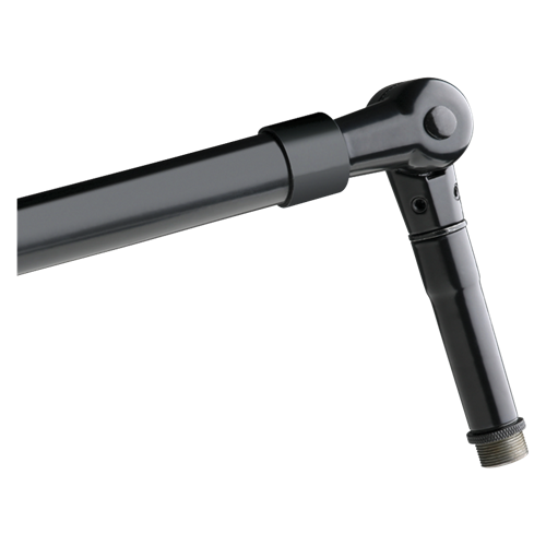 Two-piece horizontal boom assembly is 7/8" dia. cold rolled steel with a heavy-duty, die-cast, gyromatic swivel and an adjustable 6-lb. counterweight for precise and secure orientation. Tubing terminates with an adjustable mic holder swivel with standard 5/8" - 27 thread to accept all microphones, holders, and adapters.