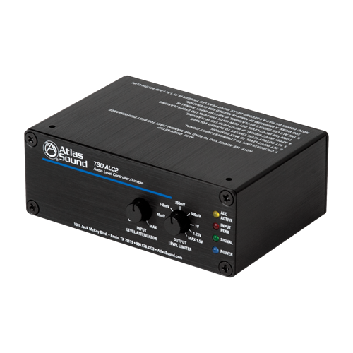 Features include stereo RCA input and output connectors, threshold level, ramp speed selection, and output gain adjustments. The TSD- ALC2 also works well when used in conjunction with Atlas Strategy Series Mixer Amplifiers. For level control and passive combining of stereo sources with Atlas amps, specify (1) AA-YSUM input cable in conjunction with (1) TSD-ALC2 for each source input.