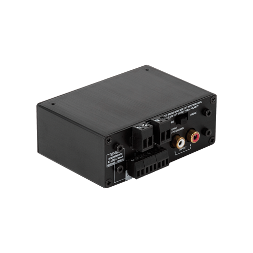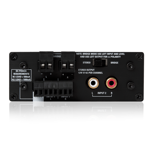 The TSD-PA122G 4Ω stereo amplifier is perfectly suited for almost any general amplification requirement. Perfect for adding sound reinforcement to small projector systems as it provides ample power to drive up to four 8Ω speakers in a classroom or boardroom application. Output is 12W per channel at 4Ω or 24W bridged mono at 8Ω. Input is via balanced stereo phoenix style and unbalanced RCA connectors. Front panel gain controls provide adjustment for both left/right or bridged outputs and include removable knobs.