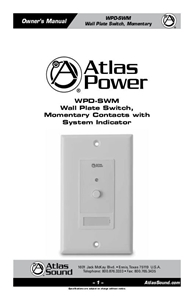 he AtlasIED WPD-SWM is a decor style wall plate featuring a push button switch that activates/deactivates a momentary contact closure. This product is designed to be used with compatible Atlas Power products that are designed to be remotely activated such as the TSD-SEQ6, and ECS-3 sequencers. The unit is constructed of durable ABS material and includes a red LED system status indicator as well as a removable label guard for easy and clean designation of key switch function. The unit has a four conductor interface connection designed to work with the included Phoenix style connector. This unit can function in remote activation scenarios up to 200 feet from the controlled unit using 22-gauge wire.